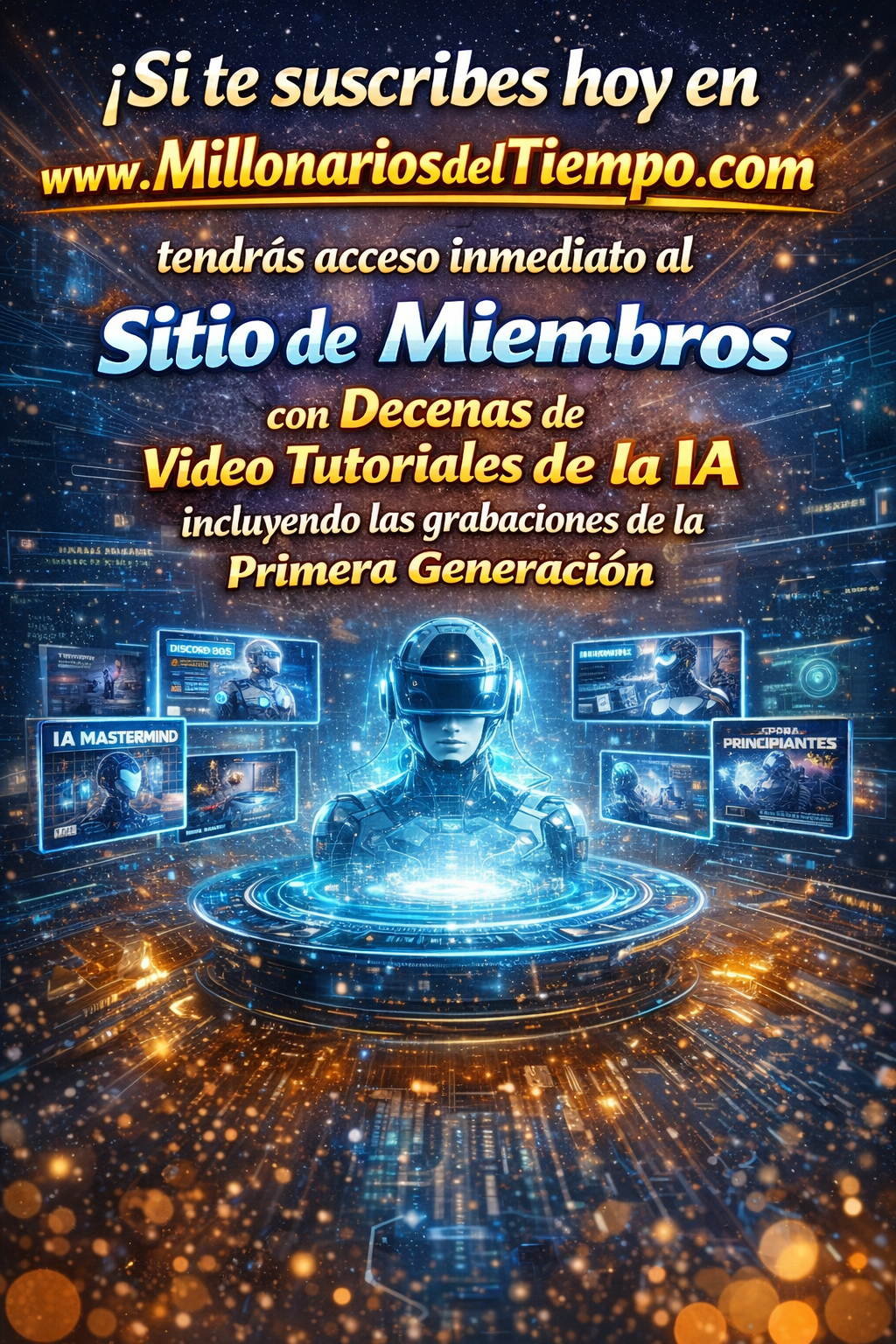 Si no quieres esperar hasta el 3 de febrero para empezar a dominar todo lo relacionado con la Inteligencia Artificial, te invitamos a inscribirte desde ahora para que accedas de inmediato a todo el contenido del Sitio de Miembros de Millonarios del Tiempo (ver video arriba).